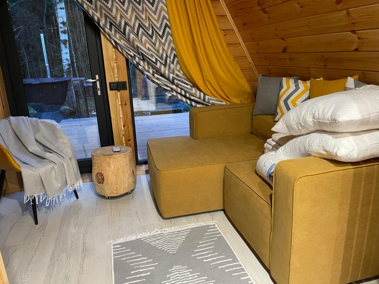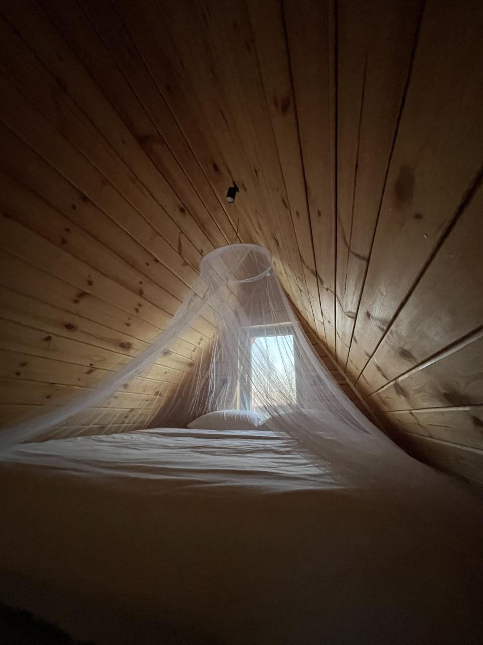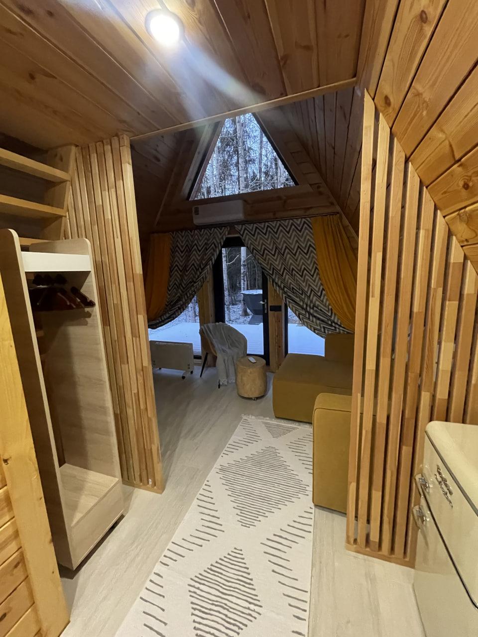 Комфортабельный дом 6х6 метров, идеально подходит для проживания 2 взрослых + 2 детей, с панорамным видом в лес, антресольным этажом для сна ваших детей (43 кв.м). Дом оборудована всем необходимым: Душевая/Туалетная комнат. Кухонная зона с микроволновой печью, холодильником, кофе машиной, чайником, раковиной для мыться посуды. 2 спальных места: Кровать 160х200 на втором этаже и раскладной диван на 1 этаже. Стол и стулья для приема пищи, кондиционер. Перед домом есть терраса 3х6 метров - в летнее время оборудованная зоной отдыха (садовой мебелью): журнальный стол и стулья шезлонги для утреннего кофе пития или завтрака, а также встреч закатов. В доме есть все необходимое для проживания, гигиенические наборы, тапочки, полотенца, посуда. У дома стоит подиум с мангальной зоной, в т.ч имеется печь для казана. Также у дома имеется банный чан, который будет подготовлен за 3-4 часа по дополнительной заявке. Банный чан держит тепло до 5 часов. Он может быть нагрет как обычной водой, так и водой с фито добавками. Мята, апельсин, хвоя, можжевельник, роза и тп. Стоимость проживания в доме: Будни (вне праздничные) – 8 000 руб. /сутки. Мангальная зона и Бассейн, костровая зона (вечером 2 часа после наступления темноты) входит в стоимость. Выходные (вне праздничные) - 12 000 руб. /сут. Банный чан с обычной водой – 3 000 руб., добавки по себестоимости отдельно - цена добавок от 600 руб. до 1 200 руб. на ваш выбор. Праздничные дни - цена устанавливается за неделю в зависимости от загрузки. Уточняйте по телефону.